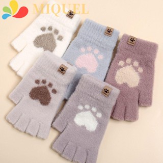 Găng Tay Hở Ngón Mềm Mại Dày Dặn Chống Gió Hình Dấu Chân Mèo Bảo Vệ Tay Cho Nữ