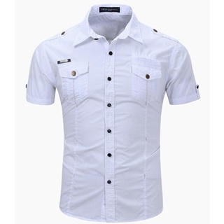 Áo sơ mi, Áo sơ mi nam cộc tay 2 túi ngực phối khóa và cúc Đồng nổi bật tạo điểm nhấn, lịch lãm, cách điệu MÃ H40
