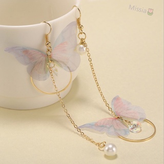 Khuyên tai hợp kim dáng dài hình bướm đính ngọc trai thời trang cho nữ