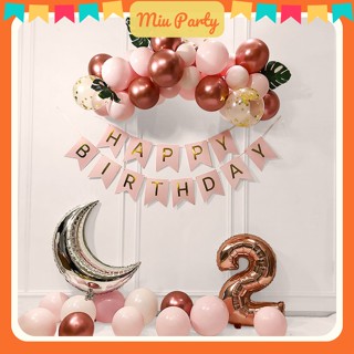 Set Bong Bóng Trang Trí Sinh Nhật Có Lá Phong Cách Hàn Quốc Tông Màu Hồng Gold - MiuParty