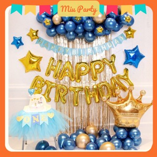 Set bong bóng trang trí tiệc sinh nhật tông màu xanh sang chảnh - Miubabyclothing