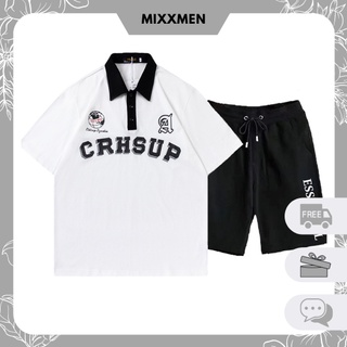 [MÃU MỚI] Bộ Đồ Nam Nữ Mùa Hè Áo Polo CRHSUP Phối Quần Short In Chữ Thời Trang MixxMen T227 + S043