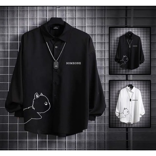 Áo Sơ Mi Nam Dài Tay Cổ Ve In Hình Mèo Họa Tiết Chữ SOMEONE Thời Trang Mixx_Men SO MI NAM 023