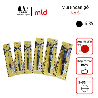 Mũi khoan gỗ, hiệu Star-M, No.05, Thép Carbon 100%, 3-36mm [MADE IN JAPAN]