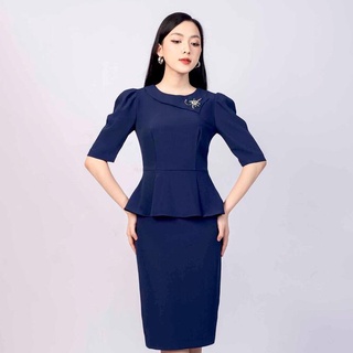 Đầm dáng bút chì, tay ngắn đính cúc trên vai, chân váy xẻ 1 bên đính cúc MMOutfit M-DA061021319