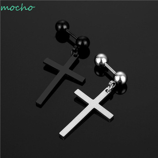 Khuyên Tai Dạng Vòng Bằng Thép Không Gỉ Hình Chữ Thập Đính Đá Zircon Thời Trang Hàn Quốc Cho Nam Và Nữ