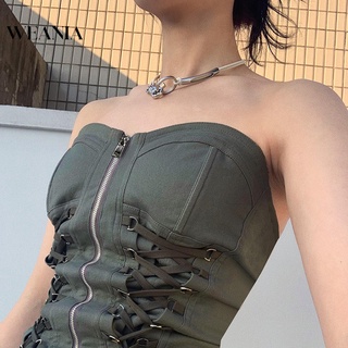 Áo Ống Ôm Dáng Phối Khóa Kéo Hở Vai Quyến Rũ Cho Nữ