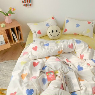Bộ Chăn Ga Gối Cotton 3D poly trái tim nhiều màu sắc phong cách Hàn Quốc cotton mềm mịn mát tặng kèm vỏ gối ôm cùng bộ