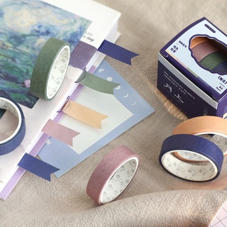 Set 5 Cuộn Băng Keo Họa Tiết Hình Học Màu Sắc Trơn