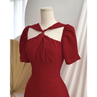 Đầm xoắn ngực dáng dài, có tay basic mặc đầm Tết siêu xinh nha , size SML, hàng thiết kế