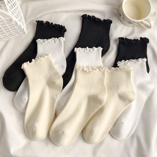 Vớ cổ cao lolita đen trắng dành cho nữ tất ren cotton thời trang đẹp kháng khuẩn khử mùi thấm hút mồ hôi tốt MONEY VC149
