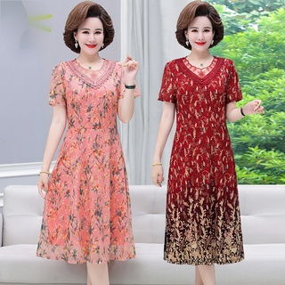 Đầm Chiffon In Hoa Thời Trang Mùa Hè Cho Phụ Nữ Trung Niên