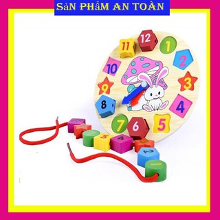 Đồng Hồ Gỗ Xâu Hạt Cho Bé - Đồng Hồ Gỗ Hình Học Kèm Xâu Hạt Giúp Bé Tư Duy Và Rèn Luyện Tay Khéo Léo