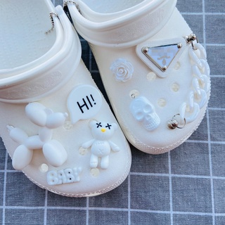 Bộ 8 Nút Giày Màu Trắng Hình Cún/Gấu/R croc jibz Thời Trang#Loạt Đen Trắng