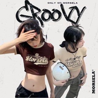 MORSELA® chính hãng - Áo croptop nữ tay ngắn ôm body 𝗚𝗥𝗢𝗢𝗩𝗬 in logo phong cách Y2K hiện đại