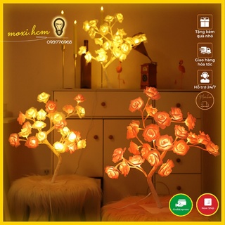 【 HÀNG SẴN hộp PIN+USB 】Đèn Led bàn hình cây hoa Hồng trang trí DECOR phòng ngủ, bàn học VINTAGE , quà tặng MOXI