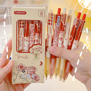 Set 6 Bút Mực Đen Ngòi 0.5mm Họa Tiết Hoa Hồng Có Thể Thu Gọn Cho Học Sinh
