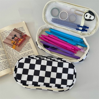 Túi Đựng Bút Họa Tiết Kẻ Ô Trắng Đen Sức Chứa Lớn Tiện Dụng Cho Học Sinh
