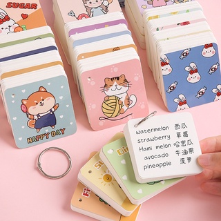 Set 80 tấm thẻ ghi chú kèm nhẫn họa tiết hoạt hình sáng tạo