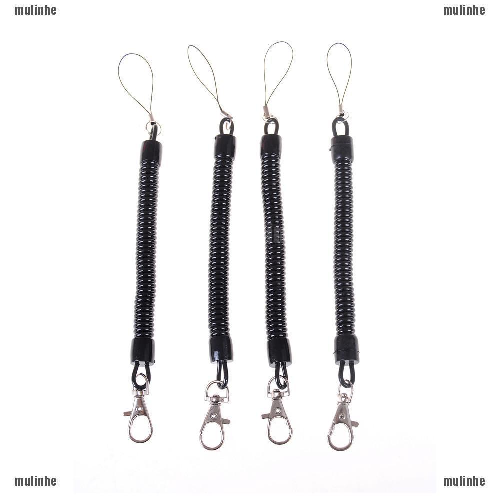 Móc khóa dây lò xo da PU đen đa năng tiện dụng