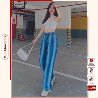Quần jean suông nữ munmunstore ống rộng lưng cao, bò suông phong cách thời trang Hàn Quốc