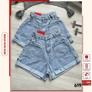 Quần short jeans nữ MunMunStore Lưng cao trơn màu xanh phong cách Hàn Quốc(ảnh + video thật) 8726