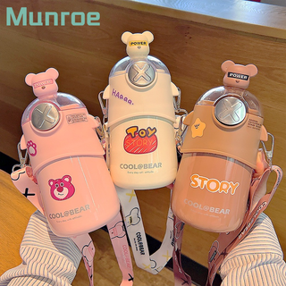 Munroe Bình Đựng Nước Bằng Nhựa Có Ống Hút Và Dây Đeo Nhỏ Gọn Cá Nhân Hóa Hoạt Hình Dễ Thương Dành Cho Trẻ Em Đi Học