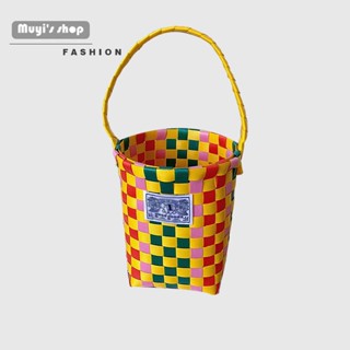 Giỏ Đan Tay Mini Màu Sắc Tương Phản Phong Cách Đường Phố