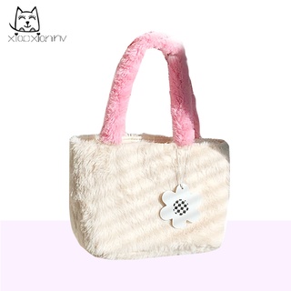 Túi Xách Tay Phủ Bông Màu Sắc Tương Phản Thời Trang Thu Đông Cho Nữ 2021