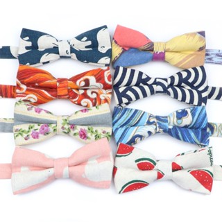 Cà Vạt Nơ Vải Cotton Mềm Mại In Họa Tiết Hoa / Bướm Cổ Điển Có Thể Điều Chỉnh Cho Chú Rể