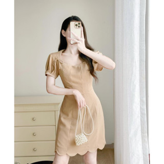Váy Cổ Vuông Thắt Nơ Vai Viền Lượn Sóng Khóa Sau Xếp Ly Tay Có Lót Trong Phong Cách Tiểu Thư MYAN DESIGN Vvn062311