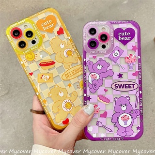 Ốp Điện Thoại Silicon Kẻ Sọc Caro In Hình Gấu Hoạt Hình Cho iPhone 11 12 13 14 Pro Max X Xr Xs 8 7 6 Plus SE 2020