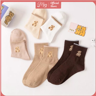 Tất nữ thêu hình gấu cổ cao vải len co giãn T780 MYN_UNDERWEAR