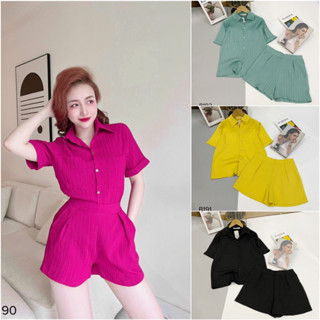 Set bộ đồ áo sơ mi cổ đức đũi gân quần cộc sang chảnh có size từ 40 - 72kg