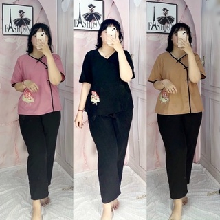 SÉT BỘ QUẦN 9 TẤT ÁO CỔ VUÔNG ĐÍNH NÚT(bigsize 68-95kg)