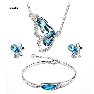 Bộ dây chuyền + hoa tai mặt hình bướm đính đá