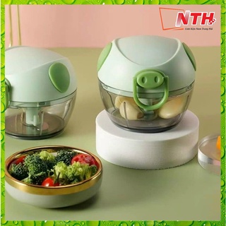 Cối Xay Máy Xay Tỏi Ớt Cầm Tay Băm Thịt, Dụng Cụ Xay Đồ Ăn Dặm Mini Hình Con Heo