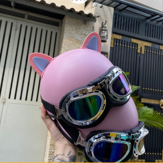 [Tặng tai mèo tai gấu]Combo mũ bảo hiểm nửa đầu kèm kính PC cao cấp cho cặp đôi full phụ kiện