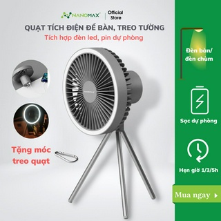 Quạt Tích Điện Đa Năng NANOMAX DQ212, Để Bàn, Treo Tường, Tích Hợp Đèn LED, Pin Dự Phòng, Giá Đỡ Tripod, Du Lịch, Cắm Tr