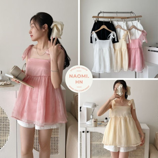 Set đồ nữ áo hai dây babydoll buộc nơ vai kèm quần sooc chun co giãn Ulzzang. Set đồ nữ chất thô đũi mát 3 màu HOTHIT.