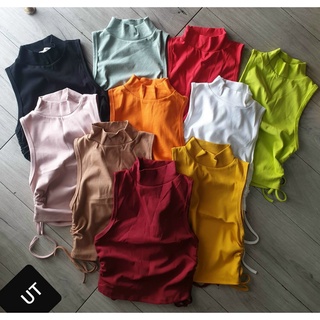 Áo kiểu , áo ba lỗ thun gân cổ lọ trơn rút dây 2 bên cực hot , chất thun gân dày dặn co giãn