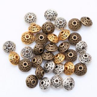 Bộ 50 hạt kim loại vàng bạc hình bầu dục UFO phong cách Tây Tạng cổ điển dùng làm trang sức làm vòng tay thủ công