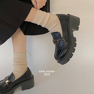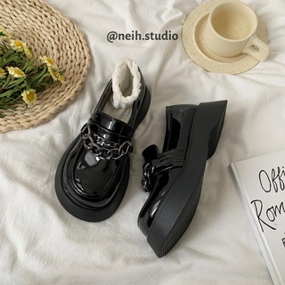 [SẴN] Giày da lười phối xích đế bằng cao dành cho nữ màu đen neih.studio [111]