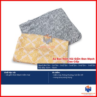 Áo bọc nệm vải gấm Đan Mạch cao cấp - 2 mặt khóa kéo cho nệm thẳng, dày 5cm đến 10cm - Giao màu ngẫu nhiên
