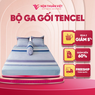 Bộ Ga Giường Tencel Thuần Việt Cao Cấp - Màu Xanh Dương TVM12 (4 Món)