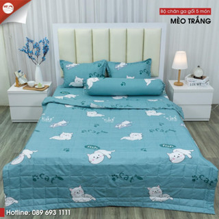 [MẪU MỚI] Vải may chăn ga áo gối, gối ôm khổ 2m35 hình chú mèo trằng xanh
