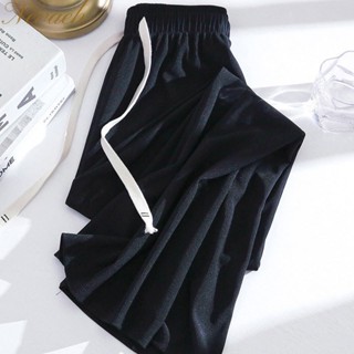 Quần Lụa Lạnh Ống Rộng Lưng Cao Thoáng Khí Thời Trang Mùa Hè Phong Cách Hàn Quốc