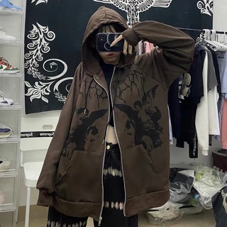 Tw Áo Khoác Tay Dài Dáng Rộng Có Dây Kéo Và Túi Phong Cách punk gothic Đường Phố Kích Thước Lớn Y2K Cho Nữ