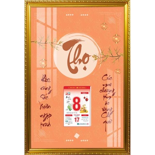 Lịch Gỗ Phù Điêu Khung Vàng Cao Cấp Treo Tường Laminate Tráng Gương 2023 (45 x 65cm) - Thư Pháp Chữ Thọ (TV47)