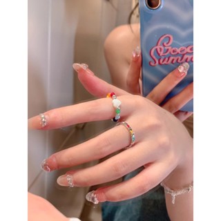 Nhẫn Hình Trái Tim Đính Hạt Nhiều Màu Sắc Phong Cách Hàn Quốc